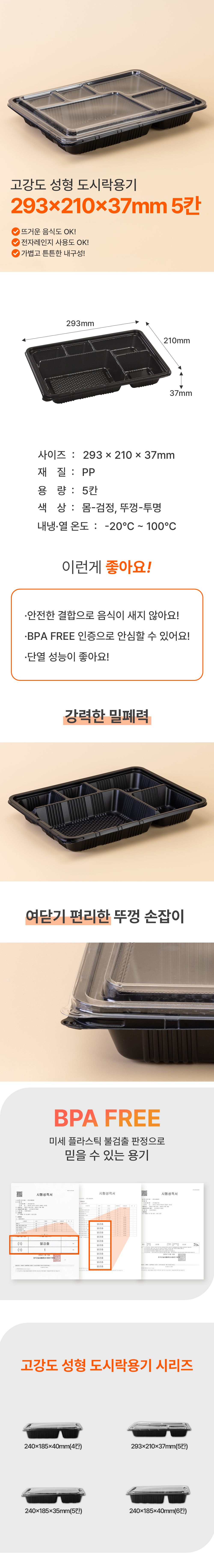 이미지 확대보기도시락 5칸 검정(DS-5/1000-1)