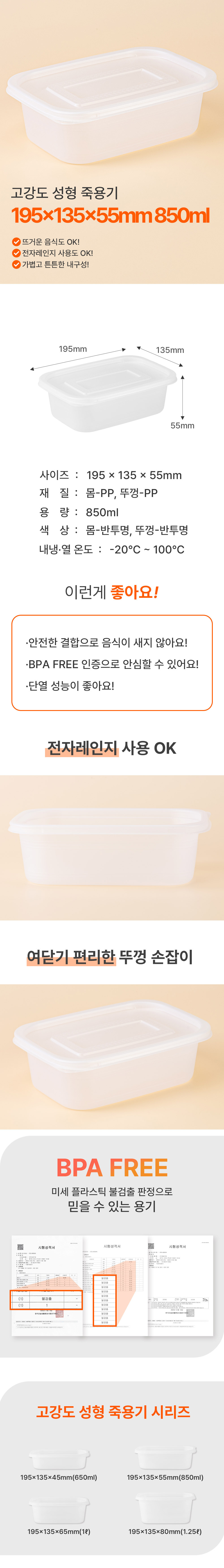 [소량]성형사각밀폐 죽용기(중) 50EA 11,600원 / 배송비 : 3,000원 주문시결제(선결제)