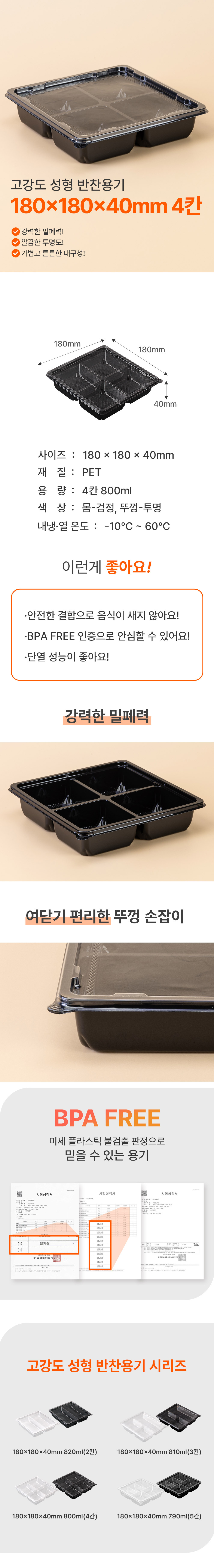 이미지 확대보기정사각 반찬/샐러드 4칸(DS-405)검정