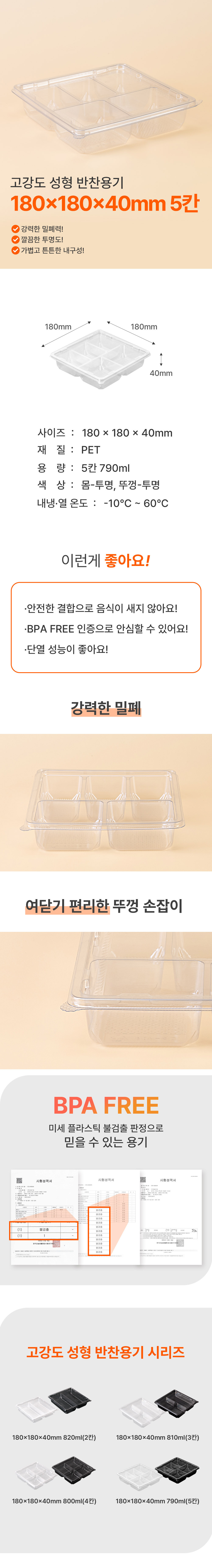이미지 확대보기정사각 반찬/샐러드 5칸(DS-406)투명