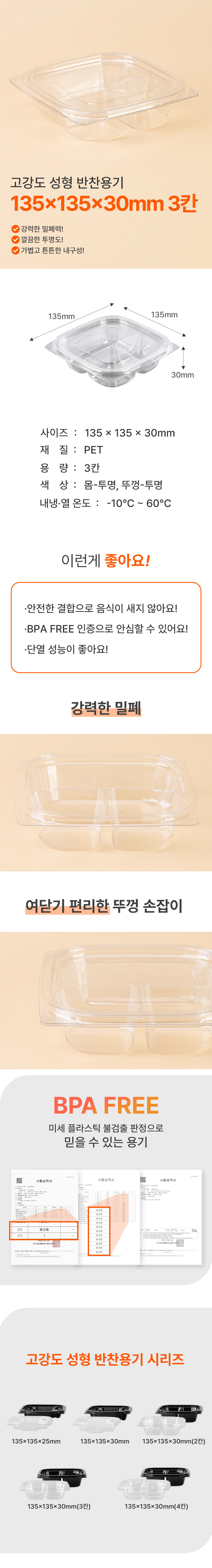 프리미엄 정사각 반찬샐러드용기 3칸 (DS-101-3/투명) 400개 합포장세트 50,300원 / 배송비 : 무료