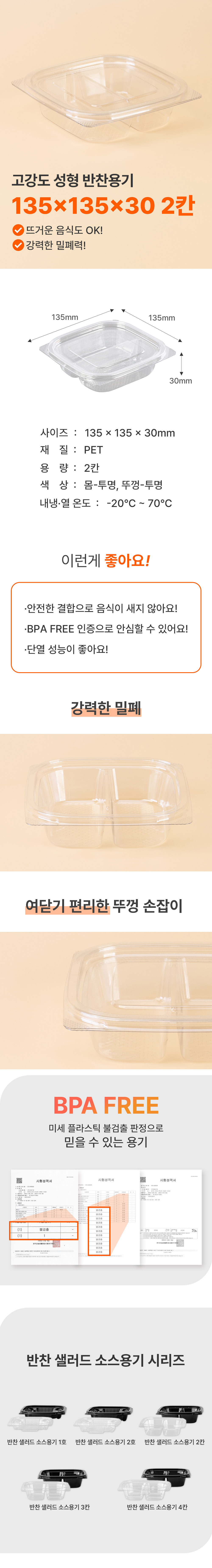 프리미엄 정사각 반찬샐러드용기 2칸 (DS-101-2/투명) 400개 합포장세트 50,300원 / 배송비 : 무료