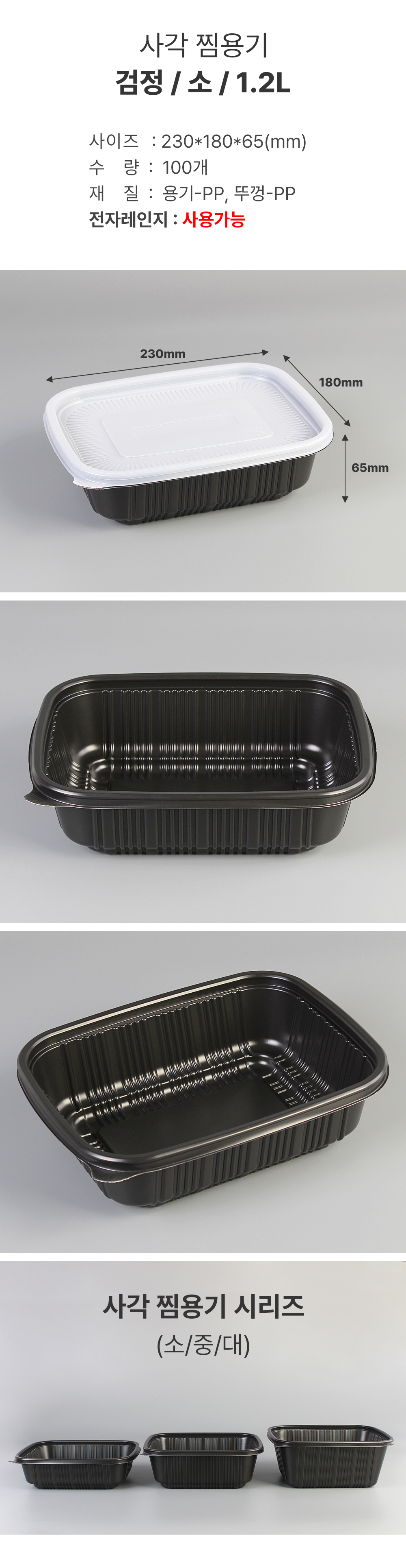 이미지 확대보기사각 찜용기 소 (검정/1.2L) 100개세트,사각찜용기,죽용기